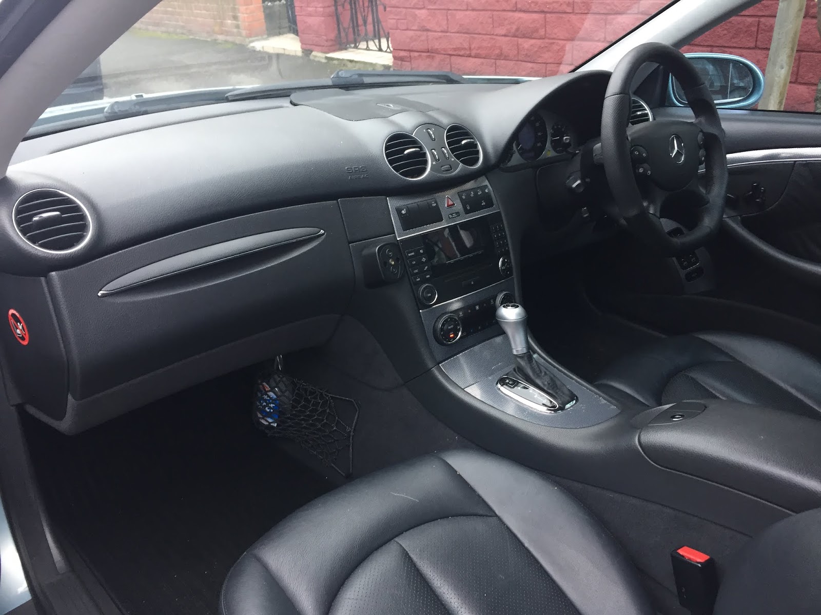 The steering wheel was remodelled, AMG pedals added and the upgraded center console bits installed. The gear knob was exchanged for an item from a C204 and the clock face was modified from a canabalised AMG unit.